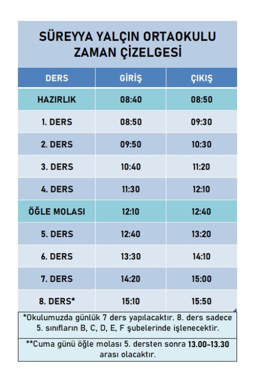 DERS ZAMAN ÇİZELGESİ YAYINLANDI